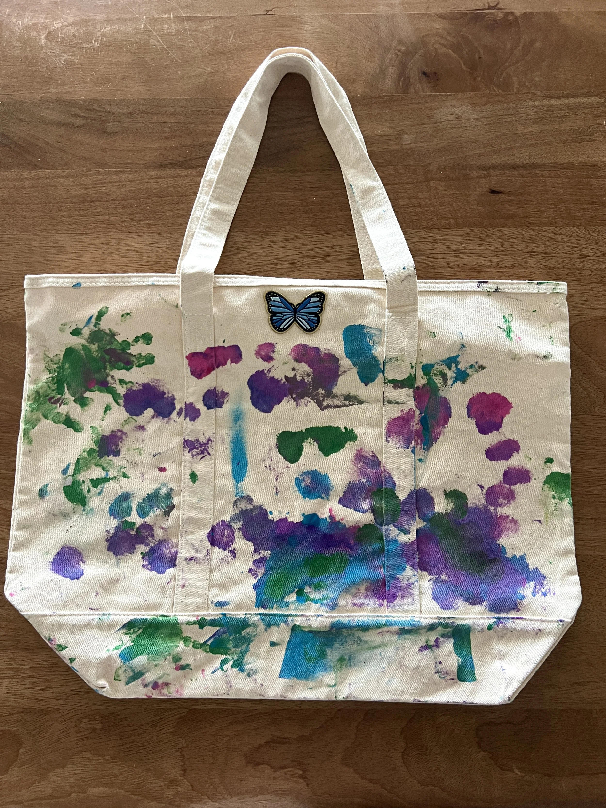 We let her choose her paint colors (removing white, brown, and black from the options to avoid a muddy situation 😅) and let her paint freely on both sides.