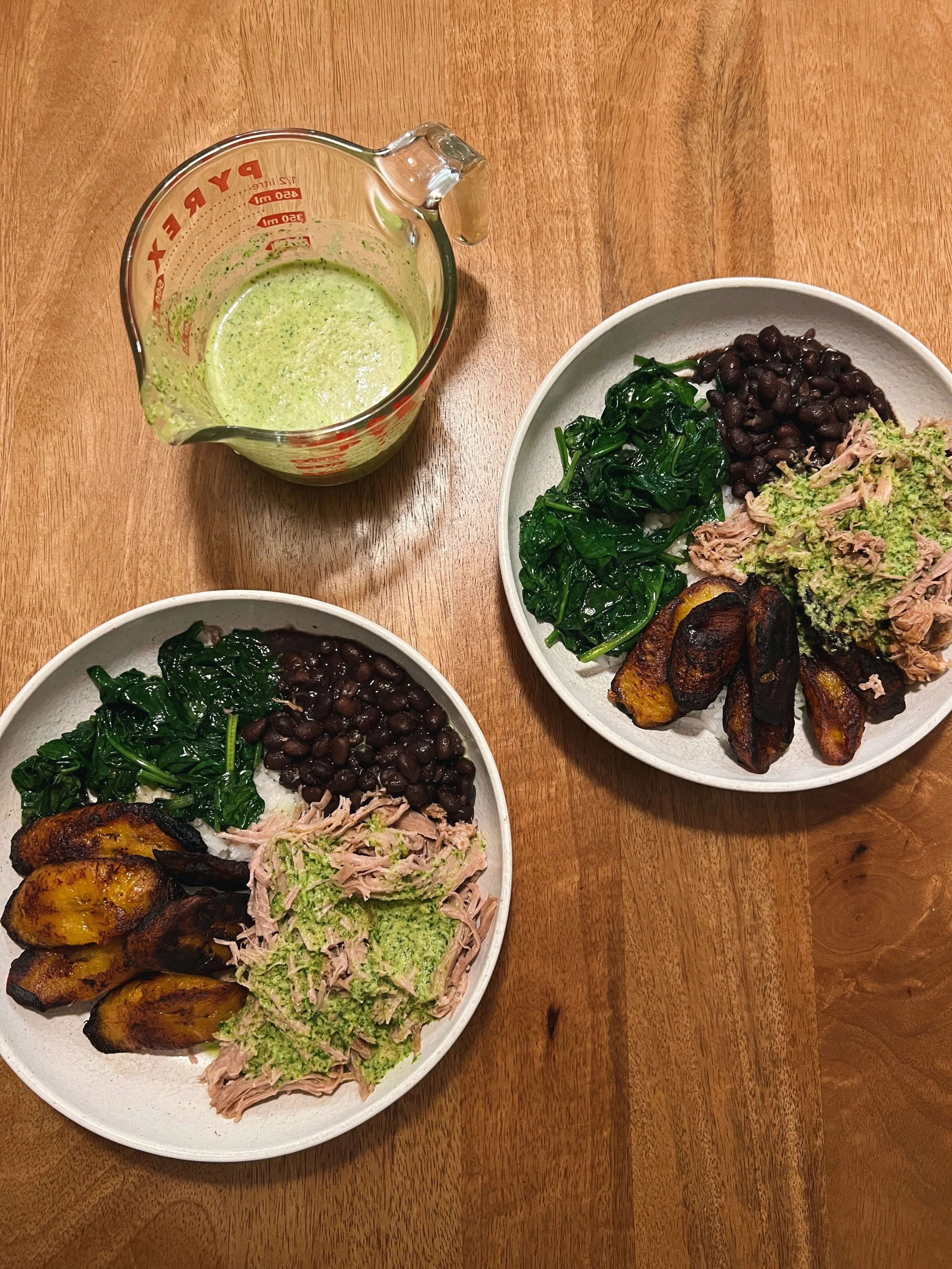Cuban-Inspired Mojo Bowls (Mojo Sauce from Bon Appetit) – Inspired by one of my favorite meals I get from Thistle (I love anything with plantains). You’ll need: